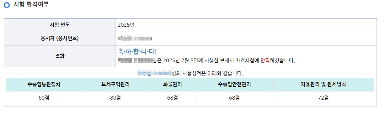시대에듀 보세사 강의를 듣고 저는 이번 2025년 시험에서 단번에 합격을 하셨습니다. 보세사 강의를 들으면서 어려운점도 많이 있었지만 시대에듀 보세사 강의를 해주신 김용승 관세사님과 김성표 관세사님 덕에 합격 할 수 있게 되었습니다. 시대에듀 보세사 강의의 장점은 관세사님들께서 최신트렌드에 맞게 설명을 잘해주시며 다른 타 학원 교재와 비교해도 시대에듀 보세사 한권으로 끝내기 교재는 대한민국에서 보세사 공부 시작하기 위해 입문책으로써 가장 좋은 책 중 하나입니다. 꼼꼼하게 잘 설명되어 있어 한 눈에 봐도 쉽게 이론 공부 할 수 있게 책이 체계적으로 이루어져 있습니다. 또한 기출특강과 모의고사 강의에서도 어려운 문제가 나온다면 그에 맞게 설명을 잘해주시고 기출분석을 꼼꼼하게 해주셔서 정말 좋은 강의를 듣고 있구나 라는 생각으로 공부를 했습니다 제가 공부했던 방법을 간략하게 말씀드리겠습니다. 준비기간은 약 4~5개월정도이며 지난 3월부터 공부를 시작하였습니다. 먼저 저는 관세법을 아예 모르고 취득한 자격증은 물류관리사 밖에 없기 때문에 아예 생노베이스였습니다. 그래서 인강을 처음부터 끝까지 듣고 듣고 난 다음 책에 있는 문제를 가볍게 풀었습니다. 그렇게 틀리든 말든 신경쓰지 않고 가벼운 마음으로 부담없이 공부를 하였습니다.이렇게 1회독을 끝마치고 기억이 나지 않아 다시 한번 인강을 듣고 노트 필기를 시작했습니다. 노트 필기 후 부족한 부분과 까먹은 부분이 있는게 보이면 그 부분을 주구장창 깜지 쓰듯이 외우고 김용승 관세사님의트렌드인'창살기부주류','수크재압검역우' 등 앞 글자를 따서 암기를 하면서 쉽게 까먹지 않고 좀 더 재미있게 공부를 하였습니다. 이렇게 암기와 무한 반복을 통해 개념을 다졌다면 시대에듀 기출문제와 최종모의고사 n회독과 강의 수강을 통해 시험문제를 맛보고 부족한 부분과 제가 약한 부분을 커버 할 수 있었습니다. 이번 시험은 지난 2024년 시험보다 어렵진 않았지만 까다로운 문제가 많이 있었습니다. 특히나 1과목 수출입통관절차 과목이 지난 시험보다 매우 어렵게 느껴져 시험 볼 때 많이 당황했지만 제 자신을 믿고 쉬운 문제는 빠르게 풀고 어려운 문제는 과감하게 버리는 전략을 선택하면서 다행히 좋은 점수는 아니였지만 60점으로 마무리하여 합격에 한 발자국 다가간게 아닌가 이런 생각이 들었습니다. 보세사를 준비했던 이러한 과정과 노력이 결코 헛된 노력이 아니라는 것을 느꼈습니다. 보세사를 준비하시는 모든 분들꼐 포기하시지 마시고 열심히 준비하신다면 저보다 좋은 점수를 받으면서 합격 하실 수 있다고 생각합니다. 지금까지 제 글 읽어주셔서 감사합니다.