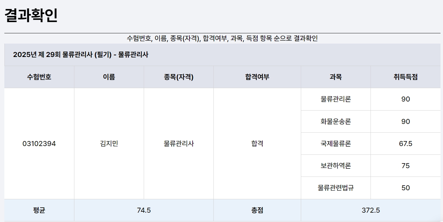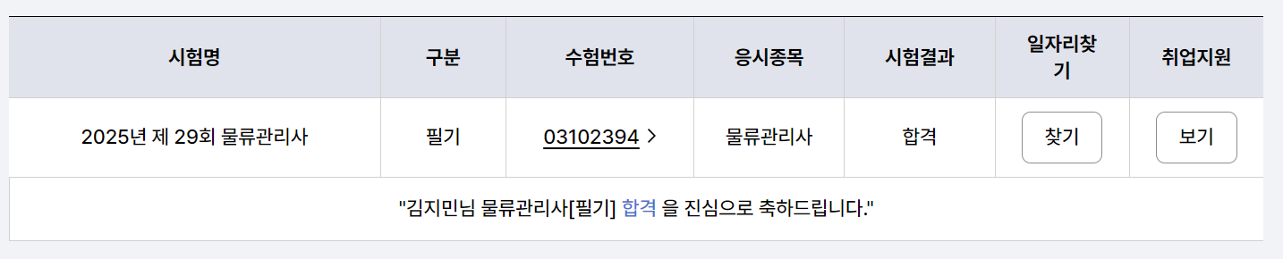2025 제 29회 물류관리사 합격 후기