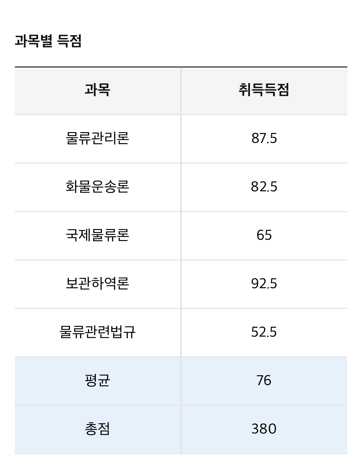 제일 쉬운 과목입니다. 물류관리론 보다 더 높은 점수를 충분히 받을 수 있습니다.