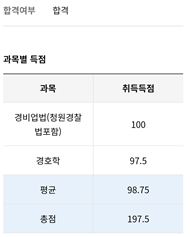 결과적으로 경비업법 100점, 경호학 97.5점으로 1개 틀리고 합격했습니다.
